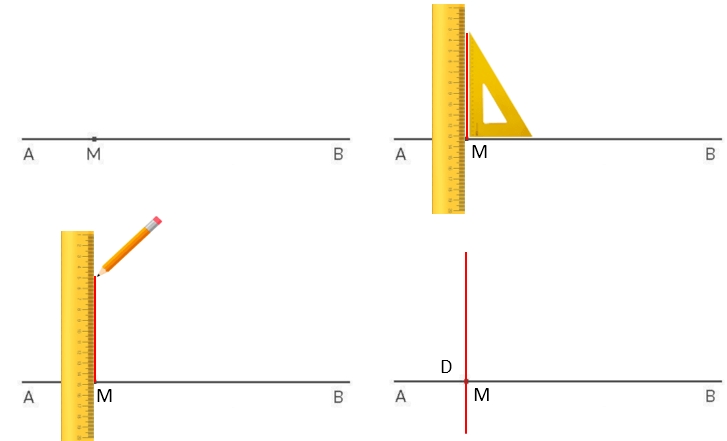 Vẽ đường thẳng CD đi qua điểm M và vuông góc với đường thẳng AB.