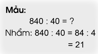 Khi chia số tròn chục, tròn trăm, tròn nghìn, … cho 10, 100, 1 000 ta chỉ việc bỏ bớt đi số chữ số 0 của số bị chia đúng bằng số chữ số 0 của số chia.
