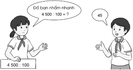 a) Em viết một phép chia cho 10, 100, 1 000,… Chẳng hạn, 4 500 : 100 = ?