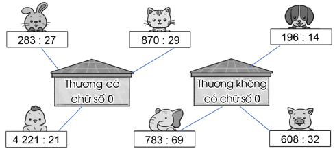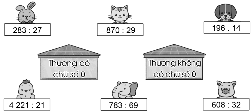 Nối thẻ ghi phép chia với ngôi nhà thích hợp