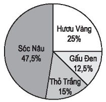 - Từ biểu đồ ta thấy có 25% số học sinh là cổ động viên của đội Hươu Vàng, 12,5% số học sinh là cổ động viên của đội Gấu Đen, 15% số học sinh là cổ động viên của đội Thỏ Trắng và 47,5% số học sinh là cổ động viên của đội Sóc Nâu. Từ đó ta tìm được số học sinh là cổ động viên của từng đội.