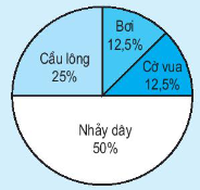 Nhìn vào biểu đồ ta thấy có 12,5% học sinh tham gia môn bơi.