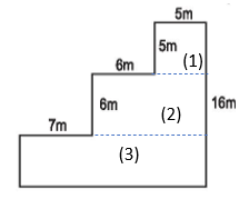 (7 + 6 + 5) ⨯ (16 – 5 – 6) = 90 (m2)