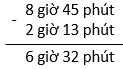 Vậy 8 giờ 45 phút - 2 giờ 13 phút = 6 giừo 32 phút