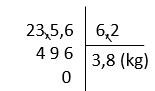 Vậy: 23,56 : 6,2 = 3,8 (kg)
