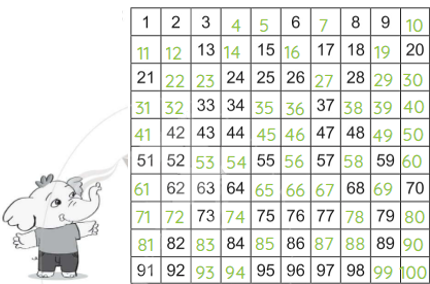b) Trong Bảng các số từ 1 đến 100, hãy chỉ ra: