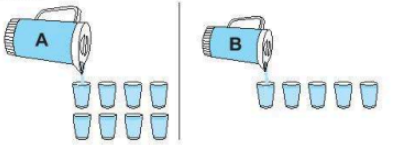 Rót hết nước từ bình A và bình B được đầy các cốc nước (như hình vẽ)
