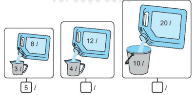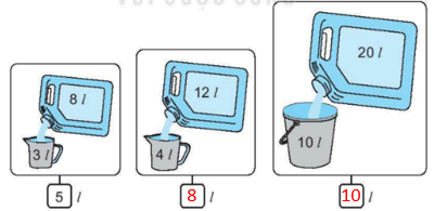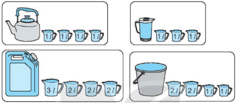 Mỗi đồ vật đựng số lít nước ứng với các ca nước bên cạnh (như hình vẽ).