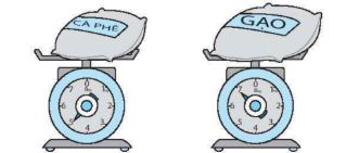 a) Túi cà phê nặng …… kg. Túi gạo cân nặng …… kg.