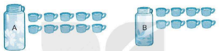 Mỗi bình A và B chứa được số cốc nước như hình dưới đây.