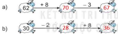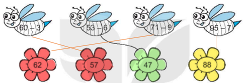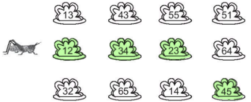 Châu chấu bật nhảy đến các bụi cỏ ghi số theo thứ tự các số là kết quả của các phép tính dưới đây.