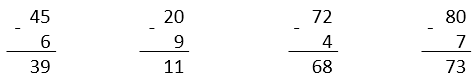 Em thực hiện phép trừ theo cột dọc và được kết quả như sau: