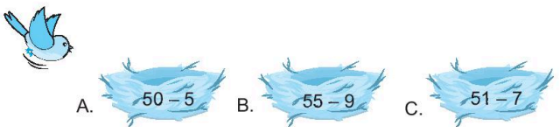 Bạn chim sẽ vào tổ ghi phép tính có kết quả lớn nhất. Bạn chim sẽ vào tổ nào?