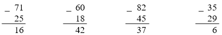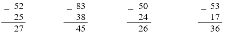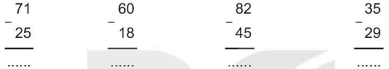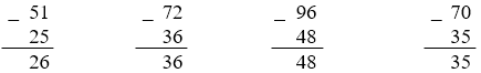 | 100 – 20 = … | 100 – 60 = … | 100 – 10 = … |