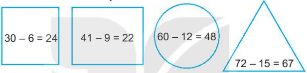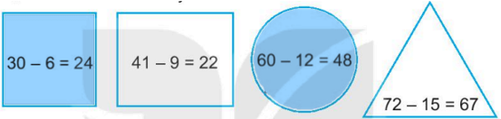 Các hình ghi phép tính đúng là: hình vuông; ………………………………………………