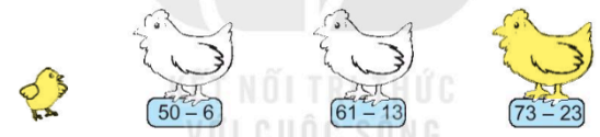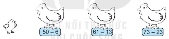 Thực hiện các phép trừ được ghi ở ô gà mẹ đang đứng, em có kết quả như sau: