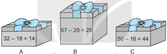 32 – 18 = 14 ; 57 – 29 = 28 ; 50 – 16 = 34
