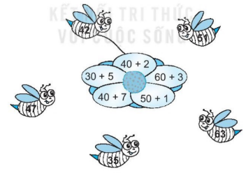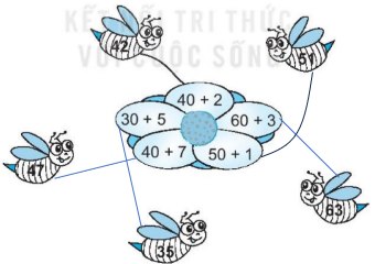 b) Em thực hiện các phép tính trên cánh hoa. Nối con ong với cánh hoa có kết quả giống nhau