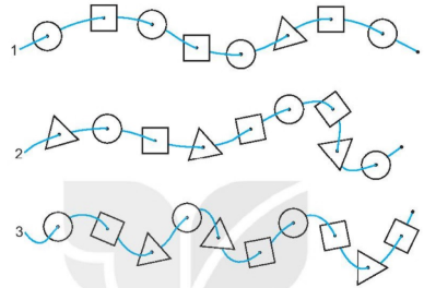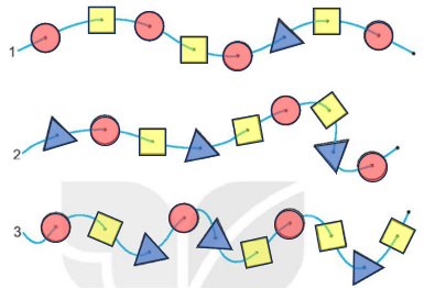 a) Quan sát ba dây ở trên rồi tô màu đỏ vào các hình tròn, màu vàng vào các hình vuông, màu xanh vào các hình tam giác