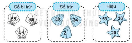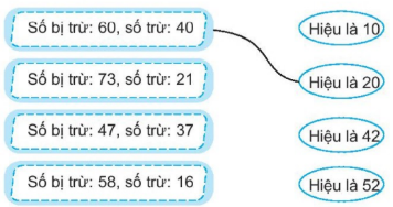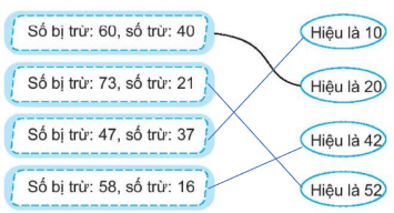 Từ số bị trừ, số trừ và hiệu, lập được các phép trừ thích hợp là: