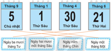 Quan sát các tờ lịch, em nối như sau:
