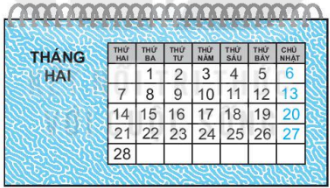 Xem tờ lịch tháng 2 sau đây rồi viết câu trả lời.