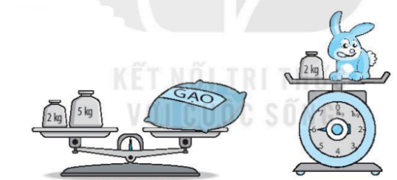- Em quan sát hình: thấy bao gạo = 2 kg + 5 kg = 7 kg