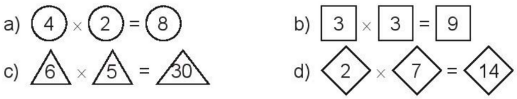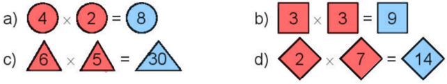 Tô màu đỏ vào các thừa số, màu xanh vào tích tương ứng trong mỗi phép nhân sau: