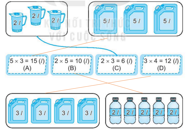 Từ các thừa số 5, 4, 3, 2 và các tích 8, 15, em hãy lập phép nhân thích hợp.
