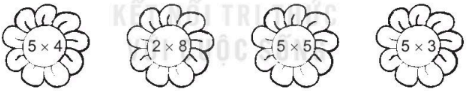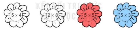 Tô màu đỏ vào bông hoa ghi phép tính có kết quả lớn nhất, màu xanh vào bông hoa ghi phép tính có kết quả bé nhất.