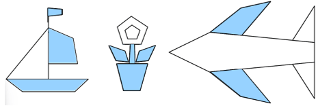 Em hãy giúp bạn Voi tô màu xanh vào những mảnh ghép tứ giác trong hình dưới đây: