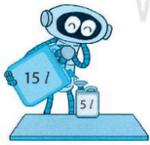 Rô – bốt chia 15 l nước mắm vào các can, mỗi can 5 l. Hỏi được bao nhiêu can nước mắm như vậy?