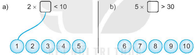Em thực hiện phép tính nhân (hoặc chia), rồi so sánh kết quả với số (hoặc phép tính)