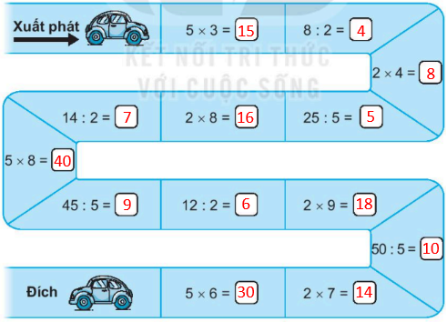 Thực hiện các phép tính từ điểm xuất phát đến đích, em được kết quả như sau: