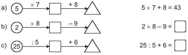 a) 5 × 3 = 15 10 : 2 < 6 |