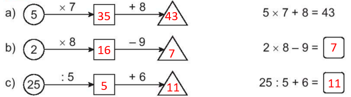 Lần lượt thực hiện phép tính theo thứ tự từ trái qua phải: