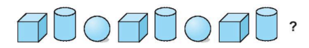 - Quan sát tranh ta thấy quy luật: hộp, trụ, cầu, hộp, trụ, cầu, hộp, trụ, … Vậy cứ sau khối trụ sẽ là một khối cầu.