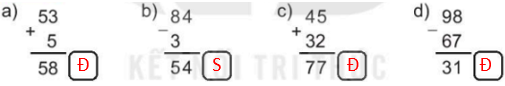 Phép tính b đặt tính sai, tất cả các phép tính còn lại đặt tính và tính đúng.