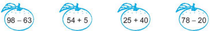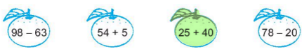b) Thực hiện các phép tính trong các quả cam. Tô màu xanh vào quả cam ghi phép tính có kết quả lớn nhất: