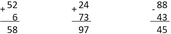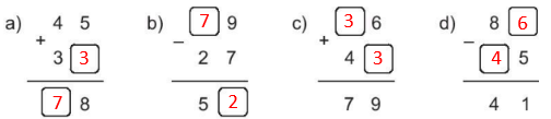 c) 90 – 10 = 80 d) 40 + 60 = 100
