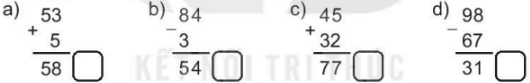Em thực hiện các phép toán cộng, trừ, em điền được kết quả như sau: