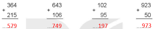 Em thực hiện cộng lần lượt các chữ số hàng đơn vị, rồi đến hàng chục và cộng các chữ số hàng trăm.