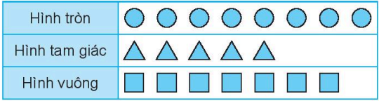 Số hình tròn nhiều hơn số hình tam giác là …… hình.
