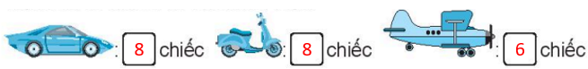 a) Em thực hiện đếm số đồ chơi, em điền được: