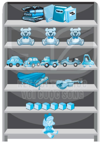 Em đếm được trên chiếc kệ đồ chơi có: