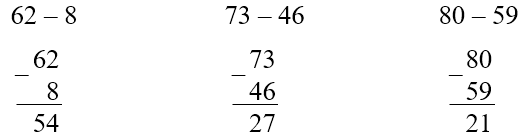 b) 62 – 8 ……………… ……………… ……………… |