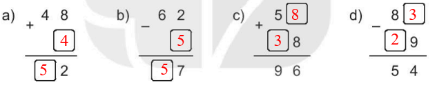 Em thực hiện cộng, trừ lần lượt từ phải sang trái, từ chữ số hàng đơn vị đến chữ số hàng chục.