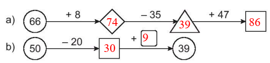 a) 50 + 30 = 80 80 – 50 = 30 80 – 30 = 50 |