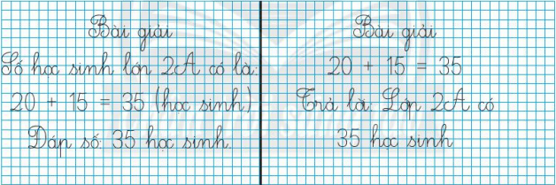| Lớp 2A có 20 bạn nữ và 15 bạn nam. Hỏi lớp 2A có bao nhiêu học sinh? | ![]() |