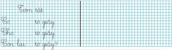 Tóm tắt: Có: 14 tờ giấy Cho: 5 tờ giấy Còn lại: ... tờ giấy? |